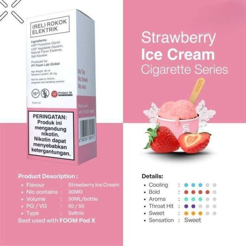 Foom umumnya menyediakan liquid dalam bentuk pod refill atau cartridge siap pakai, dengan kadar nikotin 3% hingga 5% (tergantung pasar dan edisi). Kandungan nikotin salt ini membuat pengguna mendapatkan sensasi nikotin lebih cepat tanpa rasa terbakar di tenggorokan.